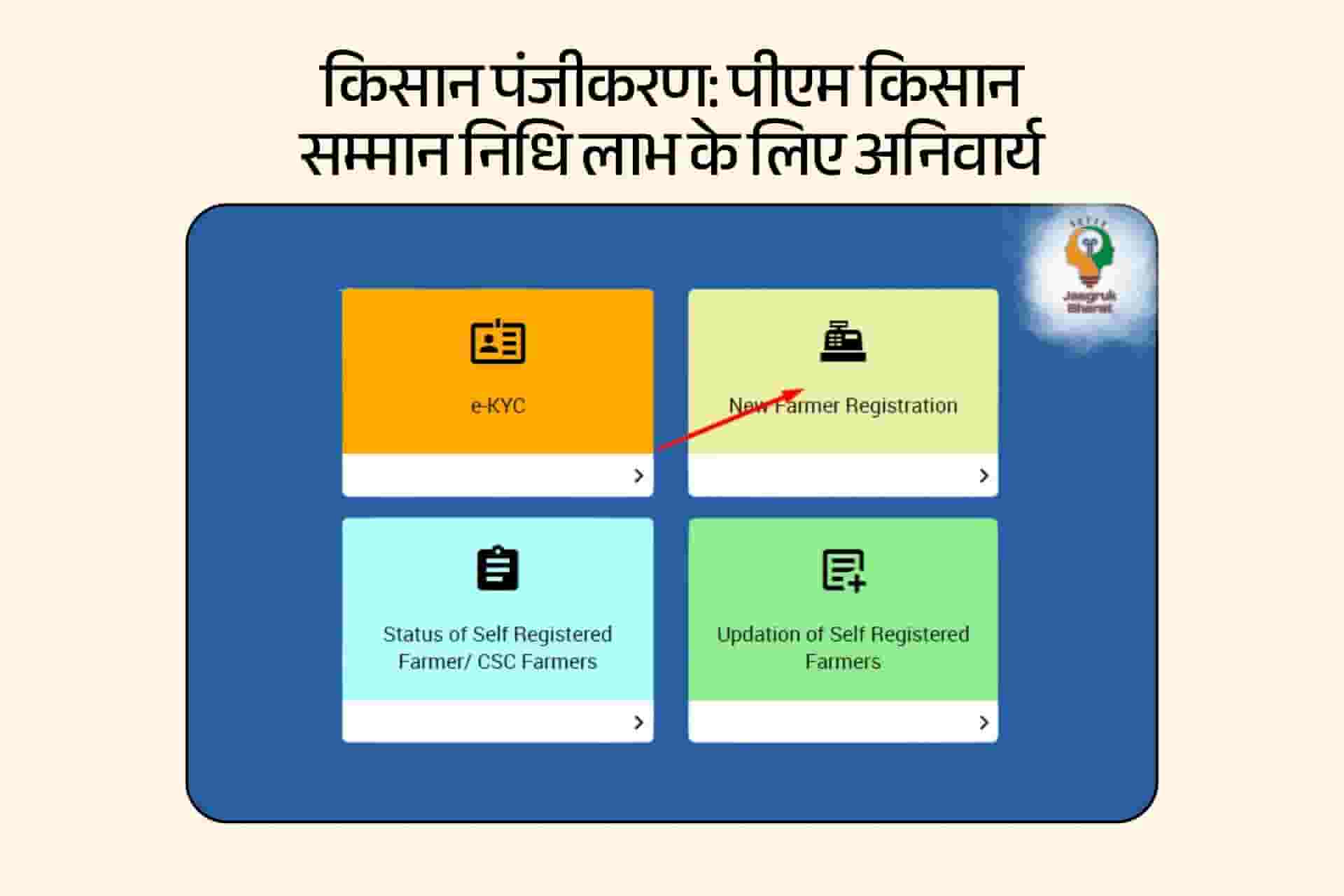 किसान पंजीकरण एक प्रणाली है जो किसान की जानकारी एकत्रित करने और उनके सत्यापन के लिए उपयोग की जाती है। इसमें आधार से लिंकिंग, भूमि सत्यापन और ई-केवाईसी प्रक्रिया शामिल होती है। यह गलतियों की संभावना को कम करता है। किसान निम्नलिखित तरीकों से पंजीकरण कर सकते हैं: